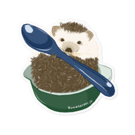 ステッカー - 100 x 100 (mm)小さなお皿にすぽっと入って、スプーンを抱えたハリネズミさんをデザインしました。 「一緒にごはん食べようよ!」という声が聞こえてきそうなハリネズミさんをお供に、ランチタイムやティータイムを過ごしてみてはいかがですか? ノートや手帳、ノートPCなどに貼ってアクセントに、バイクやヘルメットに貼ってドレスアップに、いかがでしょうか。 ※この商品はpixivFACTORYで作られた商品です。サンプル画像は完成イメージのため、実物と異なる場合があります。