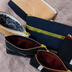小さい台形ポーチです。 Sサイズは上辺に10cmファスナー使用 Mサイズは上辺に14㎝ファスナー使用 【歌仙兼定】 表地:紫ストライプの会津木綿×紺 内側:外套裏イメージの赤の花柄 【三日月宗近】 表地:青の紗綾型+植物の正絹×灰色会津木綿 内側:ランダム 【陸奥守吉行】 表地:オレンジの正絹×紺 内側:紺の青海波 【肥前忠広】 表地:黒×灰色 内側:臙脂 【南海太郎朝尊】 表地:紺×芥子色の正絹 内側:臙脂 【堀川国広】 表地:黒×ダブルストライプの会津木綿 内側:ランダム 【山姥切国広】 表地:生成×ダブルストライプの会津木綿 内側:緑~黄色のストライプ 【山伏国広】 表地:山吹色×ダブルストライプの会津木綿 内側:ランダム
