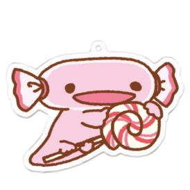 アクリルキーホルダー - 70 x 70 (mm)アメを食べてアメになっちゃったウーパールーパー、 「きゃんでぃるぱ」とペロペロキャンディーのアクリルキーホルダーです。 ※この商品はpixivFACTORYで作られた商品です。サンプル画像は完成イメージのため、実物と異なる場合があります。