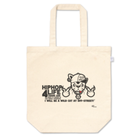 トートバッグ - M - プリント面積中猫のHIPHOP-HIPHOP4LIFE(カラー:ブラック) DESIGN-151Aのオリジナルキャラクターです。 カッコかわいいHIPHOPの猫です。 【英文】 ShankYou God,There is a HIPHOP in this world,otherwise I will be a wild cat off-street! 【和訳】 神様ありがとう。この世の中にHIPHOPがなかったら、オレは路地裏での野良猫になっていたよ!