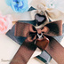 前田藤四郎と平野藤四郎のイメージにぴったりなリボンのヘアアクセサリーです。 貴女のお側にずっと仕えてくれるはずです。 それぞれのリボンにはハートチョコのチャームを付けました。 作品サイズや詳細については以下をご参照ください。