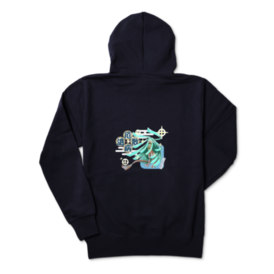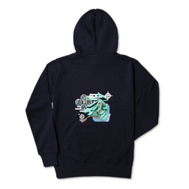 ジップパーカー - XL - ネイビーこの商品はpixivFACTORYで作られた商品です。サンプル画像は完成イメージのため、実物と異なる場合があります。 江戸時代後期の肥後国(現・熊本県)に現れたという『アマビエ』は、日本に伝わる半人半魚の妖怪。光輝く姿で海中から現れ、豊作や疫病などの予言をすると伝えられている。 「私は海中に住むアマビエと申す者なり」と名乗り、「当年より6ヶ年の間は諸国で豊作が続くが疫病も流行する。私の姿を描き写した絵を人々に早々に見せよ。」と予言めいたことを告げ、海の中へと帰って行ったという言い伝えがある。