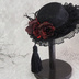 赤いミニ薔薇をメインにダークな雰囲気に仕上げたミニハットです。ブラックタッセルは動けば揺れる仕様になっております。 ゴシックな装いには勿論、着物など和装に合わせて頂いても映えるかと思います。ハット裏側の2つのクリップでお好きな場所につけて頂けますので頭だけでなく、お洋服や着物などの帯飾りとしてお使いいただいてもかわいいと思います。 ◆サイズ 約W17㎝×H5㎝ クリップは帽子の内側についています。留めにくい場合もございます。掲載画像は閲覧環境により色合い等多少のニュアンスの違いがある場合がございますので予めご了承下さい。 ご入金後のキャンセルは致しかねますので商品はしっかりとご確認の上ご購入をお願い致します。 送料につきましては、約540円~1090円前後です。配達地域により異なりますので、ご注文内容確認画面にてご確認ください。 ※花は全て造花です。