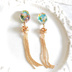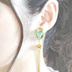 『竜宮城』 海の中の色とりどりな風景をイメージしたレジンアクセサリーです。 ちりめんを封入し海の青、赤い珊瑚、黄色い熱帯魚などを表しています。 ちりめんの裁断場所により柄の出方が異なってくるので一点物のオリジナル。 普段使いできる和風デザインなので、日常はもちろん。 浴衣姿、着物姿の時も耳元を飾って頂けます。 プレゼントにもオススメです。 ♦販売個数 在庫 1点 ピアスかイヤリングをお選び頂けます。 注文時にメッセージにてお知らせして下さい。 ピアスはチタン。 イヤリングはバネ式イヤリング(痛み軽減ゴム付き)になります。 ◆材質について レジン(封入内容:一越しちりめん)、金メッキタッセル ◆大きさについて 全体の大きさ(長さ) 約9.5cm ◆商品について 一つ一つ心を込めて作っておりますが、手作り作品になりますので多少のゆがみなどがございます。ご理解のほどよろしくお願いいたします。 またパーツ・ビーズは海外製の物を使用しています。 状態の良い物を選んでおりますが、多少のほころびなどがある場合がございます。 手作りのパーツに関しましては強化液などでコーティングしておりますが、繊細な作品ですので優しく扱って下さい。
