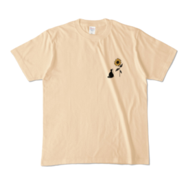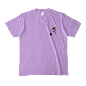カラーTシャツ - XL - アッシュ (淡色)猫とひまわりのワンポイントTシャツです。 ※この商品はpixivFACTORYで作られた商品です。サンプル画像は完成イメージのため、実物と異なる場合があります。
