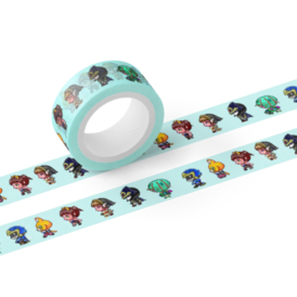 マスキングテープ - テープ幅 15mm横歩きのドットが並んでるマスキングテープニャ! キャットCが作ったゲームに登場した6人でパーティ構成されてますニャ! 各キャラ3パターンのばらつきがあるので飽きの来ない絵柄となっておりますニャ。 ※側面の文字を間違えて50mにしちゃったけど、正しくは5mですニャ!後から変更できなかったので5mだと思って使ってニャ! この商品はpixivFACTORYで作られた商品です。サンプル画像は完成イメージのため、実物と異なる場合があります。