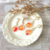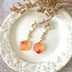 『紅葉のイヤリング/ピアス』 秋を感じられる紅葉の耳飾りです。 小さな紅葉狩りをテーマに作製いたしました。 オレンジと黄色の色合いが顔周りも明るく見せてくれます。 ちりめんの裁断場所により柄の出方が異なってくるので一点物のオリジナル。 普段使いできる和風デザインなので、日常はもちろん。 浴衣姿、着物姿の時も耳元を飾って頂けます。 プレゼントにもオススメです。 ♦販売個数 在庫 イヤリング1点 ピアス 1点 ピアスはチタン。 イヤリングはネジバネ式イヤリング(痛み軽減ゴム付き)になります。 ピアス、イヤリングのアレルギー対応金具への変更可能なデザインなのでご希望の方はご相談くださいませ。 ◆材質について レジン(封入内容:一越しちりめん)、メッキリーフチャーム ◆大きさについて 全体の長さ 約6cm レジン部分 約2cm ◆商品について 一つ一つ心を込めて作っておりますが、手作り作品になりますので多少のゆがみなどがございます。ご理解のほどよろしくお願いいたします。 またパーツ・ビーズは海外製の物を使用しています。 状態の良い物を選んでおりますが、多少のほころびなどがある場合がございます。 手作りのパーツに関しましては強化液などでコーティングしておりますが、繊細な作品ですので優しく扱って下さい。