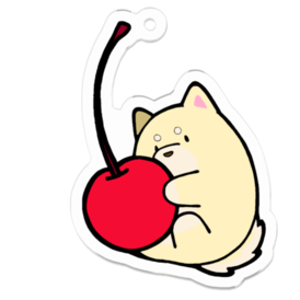 毛色白 柴犬とさくらんぼ アクリルキーホルダー