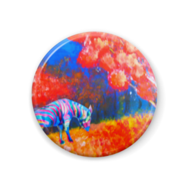 缶バッジ - 44mmこの商品はpixivFACTORYで作られた商品です。サンプル画像は完成イメージのため、実物と異なる場合があります。 商品名 紅葉とレインボージブラ 缶バッジ - 44mm 夢を叶える虹色のしまうま 星きらら 熊本アーティスト 特に動物画を描く