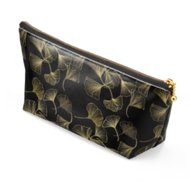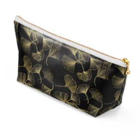黒地に手描きゴールドカラーのイチョウの葉のシルエット