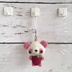 【中サイズ!受注生産 / ウール糸】赤りんご/ピンク×白色パンダさん鈴付きイヤホンジャック