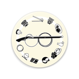 火縄銃男子/鳥の子 缶ミラー - 75mm『火縄銃男子しょうへい』の、オリジナルピクトグラム風デザインの缶ミラーです。 ポーチやポケットにスッと入る薄型ですので、普段使いにおすすめです。 【デザイン】 『火縄銃男子しょうへい』を構成するさまざまなものから着想を得て、それらをシンプルなピクトグラム風にデザインし、配置。 カラーは日本の伝統色から、薄浅葱色と鳥の子色を選びました。 【仕様】 コンパクトな手の平サイズの56mmと、存在感がある75mm、2サイズをご準備。 カラーも薄浅葱と鳥の子の2色展開ですので、お好みや使い勝手に合わせてお選びいただけます。 ※この商品はpixivFACTORYで作られた商品です。サンプル画像は完成イメージのため、実物と異なる場合があります。