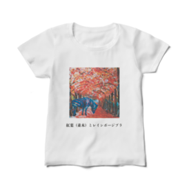 レディースTシャツ 白 紅葉(並木)とレインボージブラ