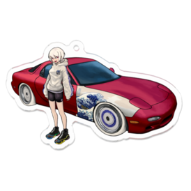 アクリルキーホルダー - 70 x 70 (mm)スポーツカーと女の子のアクリルキーホルダーです。