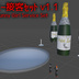 [VRChat向けアバターアクセサリー] バニーガール接客セット (シャンパン、グラス、ライター、おぼん) [Accessory Model for VRChat Avatars] Bunny Girl Service Set(champagne,glass,lighter,tray)