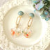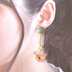 『和モダン大ぶりイヤリング』 和風レトロな大ぶりのイヤリングです。 オレンジやカーキなどのちりめんで作製いたしました。 カボション部分もカーキのくすみ色で、メインパーツの部分はレジンで透明感を感じられる仕上がりにしました。 ちりめんの裁断場所により柄の出方が異なってくるので一点物のオリジナルです。 普段使いできる和風デザインなので、日常はもちろん。 浴衣姿、着物姿の時も耳元を飾って頂けます。 プレゼントにもオススメです。 ♦販売個数 在庫 イヤリング1点 イヤリングは蝶バネ式イヤリング(痛み軽減ゴム付き)になります。 ◆大きさについて 全体の長さ 約7cm レジン部分 約縦横3cm ◆商品について 一つ一つ心を込めて作っておりますが、手作り作品になりますので多少のゆがみなどがございます。ご理解のほどよろしくお願いいたします。 またパーツ・ビーズは海外製の物を使用しています。 状態の良い物を選んでおりますが、多少のほころびなどがある場合がございます。 手作りのパーツに関しましては強化液などでコーティングしておりますが、繊細な作品ですので優しく扱って下さい。