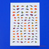 熱帯魚のイラストの転写ネイルシールです。 画面上、白地に見える部分は実際には透明になります。 貼り付けたときには、写真とは左右反転します。 エンゼルフィッシュ、レッドミッキーマウスプラティ、ブラックゴーストなど色鮮やかな熱帯魚のイラスト12種をサイズにバリエーションをつけて収録しました。 全94点(サイズ大 24点、サイズ小 70点) 絵柄のサイズ サイズ大 長辺10〜12mm、サイズ小 長辺8〜10mm ネイルに貼り付けることを想定したサイズにしてありますが、それ以外にも肌に貼ってタトゥーシールにしたり、プラスチックや金属など表面がなめらかなものに貼り付けたり、レジンに封入したりとさまざまな活用ができます。 必要な部分を切り取り、透明フィルムをはがして貼り付け、濡れたティッシュやコットンで湿らせてから紙をすべらせてはがしてください。 爪に貼った場合、トップコートを塗るときれいに仕上がります。 【素材】 市販の転写シール 透明タイプ 【サイズ】 幅100×高さ148mm(はがきサイズ) 【購入の際の注意点】 表面の粗いものにはきれいに転写できません。 色の濃いものに貼り付けると、地の色に負けてシールの色が目立たくなってしまうので、白または薄い色の上に貼ってください。 水を使って転写させるため、紙など水に弱いものには転写できません。 肌に転写した場合は一日を目安にはがしてください。 シートは湿気を吸いやすい性質があるので、なるべく早めにお使いください。 このシートを使用して制作したオリジナル作品の販売はOKです。 シート自体の転売やコピーはおやめください。