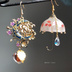 蓄光彼岸花傘と鬼灯と九尾狐のピアス イヤリング 色変化勿忘草と雫付き 和装小物 着物や浴衣 袴 普段使いにも★ 必ずプロフィールに目を通して下さい★ ひんやり氷のような鬼灯はスワロフスキーを封入したほおずきとなり、唐草に三日月、温度で色変化をおこす勿忘草、更に九尾狐が見守っている様で作製し、もう片方は蓄光する彼岸花柄の傘に雨の雫が零れ落ちるそんなイメージのピアスとして梅雨、雨の日、和装コーデにぴったりのアクセサリーに仕上げました♪ その時だけでも片耳で楽しめます★ 桜が咲く季節や雨の時期、冬の季節、暑い夏ににもひんやりしたい、寒い時期にも活躍いたします。 普段使いにもつけやすい形ですが、コスプレ、イベントにもお使い頂けると思います。 アンティーク感を楽しめるデザインにしたネックレスなのでアンティークお好きな方にオススメです。 ※こちらは型取りから成型し、更に研磨、その上から樹脂にてコーティングしております。光でキラキラと反射し、ガラスパーツやアクリルでは出せない輝きがあります。 華やかなのでどんなシュチュエーションにも合います。 もちろんイベント、コスプレ、ハロウィン、パーティー、クリスマスプレゼント、冬や暑い夏の季節にもひんやり出来、普段使いや成人式、着物や浴衣の和装小物にも。 ※型から取り外した際によれがあったり致します。研磨をしていますが、完璧ではありません。完璧を求める方はご購入をお控え下さい この他にも、鬼灯、変わったアクセサリー、アメリカンフラワー、魔法シリーズ、フローライト、オルゴナイト、プラ板やレジン作品、ヴィンテージから和装小物扱っています。 是非ご覧くださいませ。 商品関連における私的使用又は引用等認められる場合を除き、 事前承諾の無い転売・流用、転載・複製及び模倣販売等の商用利用行為はできません。 Copyright©Azucar: All Rights Reserved. Designed by 鬼灯売りーAzucar
