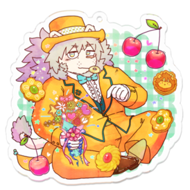 アクリルキーホルダー - 70 x 70 (mm)この商品はpixivFACTORYで作られた商品です。サンプル画像は完成イメージのため、実物と異なる場合があります。 (UV光によりインクを瞬時に硬化させるUVインクジェット印刷です。インキ被膜が堅く、耐摩性・耐薬品性に優れています。) ドレンチェリークッキーとクッキーブーケを持った琉魂歌マブイ。甘く柔らかな香りに誘われて、記念日をお祝いしにやってきました。 イラスト:もた【@argent_cookie】