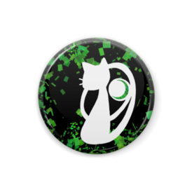 白ねこ缶バッジ グリーン