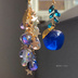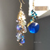 星屑と煌めく宝石雨粒宇宙色とオーロラ魔法のじゃらじゃらと蒼林檎のピアス イヤリング カラーチェンジする雫付き★