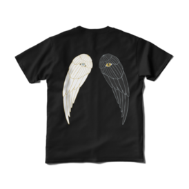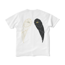 良兆翼 金銀風(白) - XL -天使と悪魔の翼をイメージしたTシャツです デザインは色違いで2種類あります プリント部分:背面 Tシャツカラー:白・黒 サイズ:各種S~XL Tシャツ仕様 メーカー:GILDAN 素材:綿 100%(リングスパンコットン) 印刷:インクジェット方式(カラーのボディの場合は白引きあり) こちらはpixivFACTORYでの受注生産となります。 サンプル画像は完成イメージのため、実物と異なる場合があります。