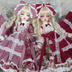 【セット内容】 (1)ワンピース (2)エプロン (3)パニエ (4)リボン 【1・ワンピース】 見頃のみ裏地付。後ろマジックテープ止め。ハンドパーツを外して着用下さい。 レース・ビーズ・リボンで装飾してあります。 【2・エプロン】 胸当ては取り外せます(マジックテープ・スナップどちらかです)。ピンタック・レースで装飾してあります オーバースカート風に着せつけても可愛いと思います。 【3・パニエ】 ウエストゴム仕様 【4・リボン】 パッチンどめでウイッグにとめて下さい。