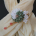 【商品説明】 ・水色×白、黄緑×白、黄×橙、ピンク×茶のストール留めクリップです。 ・薄手のマフラー、ストール、カーディガンはもちろん、ヘアアクセサリー等、様々な用途にご使用いただけます。 ・土台の仕様上、安全ピンが付いていますが、安全ピンを使用する目的で作られておりませんのでご注意ください。 ・生地は一越ちりめんを使用しています。 ・ビーズはチェコビーズを使用しています。 【サイズ】 全長(ビーズとチェーン含む):約7cm 【発送方法】 当ショップの作品は、すべて「あんしんBOOTHパック」での発送です。 「宅急便コンパクト」に設定しています。 ※日時指定はできません 【注意事項】 ・素人のハンドメイド作品です。丁寧に作ることを心掛けていますが、ヨレ、歪みがある場合がございます。既製品の様に綺麗なものでないとダメな方や、ハンドメイド作品に慣れてない方はご購入をご遠慮ください。 ・お使いのモニターや環境により色の見え方が実物と異なる場合があります。ご了承下さい。 ・金属を使用しておりますので、アレルギーのある方はお気を付けください。 ・つまみ細工は水濡れや、過度な力をくわえたり引っ張ったりすると変形する場合があります。使用・保存の際はお気をつけください。 ・こちらの不備以外での返品や返金の対応はお断りします。 ・自作発言、転売、画像転載等の行為は禁止です。 ・作品の改造は個人の責任の範囲内で行ってください。作品の形状を少しでも変化させた場合、それに伴う一切の責任は持ちません。