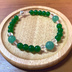 ゼルダの伝説時のオカリナのイメージブレスレットです。 リンクの勇者服の緑をイメージして作りました。 使用した石は6㎜グリーンアゲートと水晶、8㎜グリーンアベンチュリンです。手首16㎝前後の方向けサイズ。 着脱はニューホックのワイヤー仕上げ。なお、金属アレルギーには対応しておりませんので、その点ご了承の上ご購入下さい。 ブレスレットのちょうどいいサイズは、自分の手首の長さプラス1センチ前後と言われています。 購入の際はご自身の手首に合うかどうかお確かめの上 ご検討ください。着用例の画像は手首約14㎝に16㎝の ブレスレットを着用しています(6㎜玉のサイズ感を確認ください) なお、直射日光が当たる場所での保管や、水に濡らしての使用は 石の退色およびパーツの劣化につながりますので避けてください。 また、手首のサイズが16㎝以上ある場合は、注文の際メッセージでお知らせください。 微調整の上、サイズを少し大きめに変更可能です。