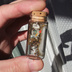 高さ約50mm 直径約22mm 主な材料・ガラス瓶、石粉粘土 ※注意事項 到着時の破損につきましては対応いたしますのでご連絡願います。 微に入り細に入り実物を見た際に見える細かな傷、 印象の違い、想像されていた色味との違い等 写真から判定できる明確な破損以外の事柄に関しては 対応できかねますのでご了承願います。 全て一点物になりますので個体差があります。 ガラス製品なので思わぬ衝撃で破損する恐れがあります。注意して取り扱ってください。 蓋のコルクは外れる恐れがあるのでアクセサリ等として使用することは絶対にお止めください。 収れん火災や劣化を避けるために直射日光を避けカビ予防のために高温多湿を避けて保管してください。 小さなお子様やペットがいるご家庭は誤飲にお気をつけください。 事故が起きましても責任を負いかねますので予めご了承ください。