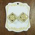 チェコ産のガラスボタンを使用したアクセサリーです。 ウランガラス(※)を使用しているため、ブラックライトで発光します。 ピアス・イヤリング お好きなものに変更できます。 金具の色・種類のご指定が可能です。 ※健康に問題はない程度のウランが含まれています。