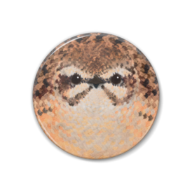 ホオジロ、メス【野鳥のフェルト風な缶バッチ】