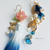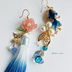 蒼金魚と蓄光鬼灯と蓮の和風ピアス イヤリング 蝶々と淡水パール、ロングタッセル付き 着物や袴 成人式の和装小物にも★