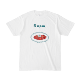 Tシャツ - XL - 白料理に罪はなければ、国境もないよ! を、テーマにあえてロシア料理デザインを作ってみたよ! タグ:ロシア 料理 ボルシチ おいしい 時事