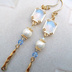 占い師の衣装、ホワイトをイメージしたピアス/イヤリングです。 透け感のあるガラスパーツをメインにコットンパールやスワロフスキーを使用し、衣装の透明感と繊細さを意識しました。 撮影状況により、画像と実物の色合い等に違いが出る場合があります。 ご不明な点はお気軽にお問い合わせください。 長さ:約5.5㎝(イヤー金具部分を除く) 金具の色:ゴールド *ご注意* *素人によるハンドメイド作品です。 *ハンドメイド作品ですので、同じ品を複数ご購入頂いた場合でも少しずつ個体差がある場合があります。 *金属を使用しております。金属アレルギーの方のご着用はご注意ください。 *一つ一つ丁寧に作成しておりますが、既製品と比べて強度や完成度が劣る場合がございます。ご了承の上お取り扱いにはご注意ください。 *水濡れや直射日光の当たる場所に放置しますと劣化が早まる恐れがありますのでご注意ください。