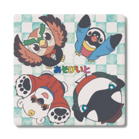 コースター - 角形あそびいとのヘンテコ動物4匹があなたのお飲み物を支えてくれます。 10㎝×10㎝×厚み0.8㎝ この商品はpixivFACTORYで作られた商品です。サンプル画像は完成イメージのため、実物と異なる場合があります。
