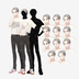 各種表情差分11種 +肌のみ黒塗り・シルエット サイズ:1100×2900px いずれも透過png