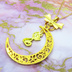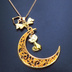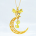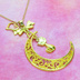 ゴールドカラーの猫と透かし三日月の大人可愛いネックレス ムーンネックレス リボン ハート