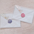 3cmほどのシーリングスタンプをシールに仕立てたものが4枚1セットになっています。 こちらは②(下段)になります。 ①(上段)はこちらのページのものよりもブルーがより淡い色味になります。 パープルからブルーパープルにかけてグラデーションになっているシールを4種類含んだシーリングスタンプのセットです。 手作りでワックスを混ぜていますので、同じ混ざり方のお品はありません。色味は同じワックスを使用しておりますが、お写真と全く同じ混ざり方でないものが届く可能性があることをご了承ください。 こちらのお品は1点1点色味は異なりますが、デザインは同じスタンプを押しております。 リストより【シーリングワックス】のカテゴリーをお選びいただくと 当店のシーリングスタンプの出品作品をまとめてご覧いただけます! ぜひご利用ください。 裏面には円形の両面シールがセッティングしてあり、剥がしてシールのようにお使いいただけるお品です。 ギフトカードにつけたり、しばらく会っていない方へのお手紙に添えるのも雰囲気が出てオススメです!