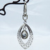 透かしアラベスク調のティアドロップ(しずく)キーホルダー ガラス シルバーカラー バッグチャーム