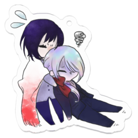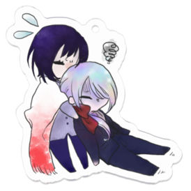 アクリルキーホルダー(コーティング) - 50 x 50 (mm)(白枠)この商品はpixivFACTORYで作られた商品です。サンプル画像は完成イメージのため、実物と異なる場合があります。 具合の悪いクリスさんをユウが引きずって運んでいるアクリルキーホルダー 白枠をつけてるものとつけてないものの2パターンあります