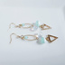 オーバルフープに三角パーツ、それぞれクリスタル色とミントミルク色のぷっくり可愛いしずくビーズ達を合わせたお洒落な揺れるタイプのピアスとなっております☆ メインのお色はまだ静かな朝の空をイメージした淡いブルー色、ゴールド金具と合わせて涼やかな雰囲気にまとめました♪ 淡いブルー系色合いがお好きな方にはもちろん、揺れるピアスがお好きな方に特におすすめの作品となっております♪ ☆しずく型チェコビーズ クリスタル・クリアAB 9x6mm ☆しずく型チェコビーズ ミントミルク 9x6mm ☆ガラスビーズ オペークライトブルー ボタンカット 4mm ☆三角パーツ ゴールド ☆オーバルフープ ゴールド ☆Tピン ☆9ピン ☆丸カン ☆ピアス用金具(フック式☆ゴールド) 長さは約5.5cmとなっております。(1cm程のピアス金具を含む)