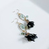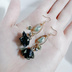 人差し指ぐらいの少しだけ小さめサイズのシックなブラックとグリーン色が混ざり合ったフラワータッセルに丸みを帯びたなオーバルフープやぷっくりしずくビーズなどを合わせたお洒落な作品となっております♪ メインのお色は大人っぽいグリーン色、ゴールド金具と合わせて素敵な色合いにまとめました☆ お洒落なフラワータッセルの隣には小さめビーズを2つ並べて可愛く仕上げました。 重さもほとんどなく軽いので、着け心地も良いと思います♪ ※こんな方におすすめ♪ *大切な方へのプレゼントに *揺れるピアスがお好きな方に *フラワータッセルがお好きな方に ☆ガラスビーズ フルコートシルバー ボタンカット 4mm ☆ガラスビーズ ライトグリーングリーンシャイン ボタンカット 4mm ☆しずく型チェコビーズ アクア・クリアマットシルバー 9x6mm ☆フラワータッセル グリーン×ブラック 約15mm ☆オーバルフープ ゴールド ☆9ピン ☆Tピン ☆丸カン ☆ピアス用金具(フック式☆ゴールド) 長さは約5.5cmとなっております。(約1cmのピアス金具を含む)
