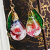 空と彼岸花の雲レジンオルゴナイトピアス イヤリングドロップ型の夕焼け空と朝焼け宝石の空、蓄光する三日月入り★(ステンドグラスのような葉っぱ付き)