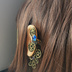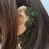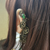 紫 2点 青 1点 緑 2点 運命の歯車が、光と影を紡ぎ出す 金古美の重厚な歯車が連なり、輝く宝珠のようなビジューを抱いたイヤーフックシリーズ。 耳に沿うようなフォルムは、まるで小さな機械仕掛けの装身具。 左右非対称の揺れるパーツが、動きに合わせてほのかに光を反射し、存在感を際立たせます。 ピアスホールがなくても楽しめる仕様で、個性的な装いにも自然に馴染む仕上がりです。 スチームパンクやゴスロリファッション、または幻想的なアクセントを加えたいときにおすすめ。 蒼機の宝環(青) 蒼の宝石のようなレジンと複数の歯車が連なる、メカニカルでありながらも上品な印象のイヤーフック。 金古美ベースがレトロな雰囲気を際立たせ、青の輝きが凛とした空気を纏います。 装着すると耳元にスチームパンクの世界が広がり、見る者を引き込む存在感です。 【スチームパンクイヤーフック/歯車モチーフ/青ビジュー/ゴシックアクセ/金古美】 幻機の宝環(紫) 光の角度で表情を変える幻想的な紫レジンと、組み込まれた歯車たちが印象的な一点。 複数のパーツが連なる立体的な構造で、まるで夢の機構が耳元に宿ったかのよう。 儚さと妖しさを併せ持つカラーリングが、幻想系ファッションにぴったりです。 【スチームパンクアクセ/歯車イヤーフック/紫ビジュー/幻想アクセサリー/金古美】 翠機の宝環(緑) 深く輝くグリーンレジンが、植物のような生命力を思わせるイヤーフック。 緻密に組まれた歯車が躍動感を生み、自然モチーフにも機械的な美を感じさせます。 ナチュラルスタイルやアート系ファッションとの相性も良く、個性派の方におすすめです。 【スチームパンクアクセ/歯車イヤーフック/緑ビジュー/ナチュラルスチーム/金古美】 ご使用にあたってのご注意 ・固定部分は接着剤とレジンで丁寧に加工しております。強度は高いですが、強い衝撃を与えると破損する場合がございますので、やさしくお取り扱いください。 ・金属パーツを使用しております。金属アレルギーをお持ちの方は、ご使用をお控えいただくか、十分にご注意ください。 ・イヤーカフやイヤーフックは、長時間着けても痛くなりにくい仕様ですが、着け心地には個人差がございます。 気になる点やご不安な点がございましたら、ご購入前にお気軽にお問い合わせください。