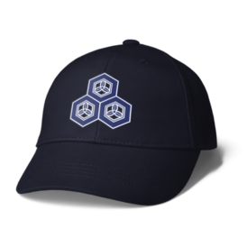 キャップ - ネイビー戦国武将 直江兼続の家紋「三つ盛亀甲に三つ葉」の帽子です。 紺地に青です。 素材:綿100% サイズ(頭周り):56 ~ 60 cm デザインの周りに1mmほどフチがつきます。 ※この商品はpixivFACTORYで作られた商品です。サンプル画像は完成イメージのため、実物と異なる場合があります。