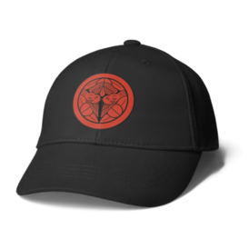 上杉謙信 家紋 竹に飛び雀 キャップ 黒赤に赤