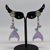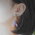 オーロラカラーのパーツとマーブル模様の尾ひれの樹脂パーツをメインに、オーロラ色の加工がされたアクリルビーズや樹脂パール、スワロフスキーを華奢なチェーンで繋ぎ、可愛らしい耳飾りをお仕立ていたしました。 尾ひれのピンク色の部分は太陽光で紫色に変化していく、個性的なパーツを使用しております。 (※尾びれのパーツの模様の出方には個体差がございます。写真とは異なるものが届く可能性がございますので、予めご了承ください) オーロラ加工はご利用しているうちに徐々にはがれてしまいますが、それも味としてお楽しみください。 華やかな仕上がりですが、樹脂製のパーツがメインのため、大変軽い付け心地です。 こちらはショートタイプでのご案内です。 ロングタイプは別途ご用意しております() お好みに合わせてお選びいただければ幸いです。 長さ:約4.5㎝ ライトローズカラーのスワロフスキービーズを使用しています。 尾ひれはアセテート(アクリル)パーツ、パールは樹脂パール、丸い水色のビーズはアクリル製です。 パーツをつないでいるチェーンは丹銅製です。 ポストピアスはスタッド部分がステンレス、キャッチは樹脂製のものを使用しております。 イヤリングは真鍮製です。シリコンゴムカバーを付けさせていただきます。 (金属アレルギー対応の金具はピアスのみとなっておりますので、ご注意ください。) 写真はポストピアスでお仕立てしたイメージです。 ご指定がない場合にはポストピアスで発送致します。 ネジバネ式イヤリングをご希望の場合にはメッセージにてご連絡ください。 ※こちらは受注生産品です。ロング・ショート合わせての在庫となっております。 minneでも販売中のため、タイミングによっては品切れとなる場合がございますが、予めご了承ください。 『ある人魚がひっそりと恋をしました。 クールな彼女は、いつもと変わらない振る舞いです。 それでも、尾ひれは恋の色を隠せません。桃色から紫色へ、今日はどんな恋模様を見せてくれるでしょう?』 そんな小さな物語をそっと添えて、お手元にお届けいたします。
