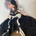 【セット内容】 ・ドレスボディ ・ドレススカート ・ヘッドドレス [バックスタイル] ・スナップボタン ・首後ろリボン結び [ヘッドドレスの着用法] ・リボン結び ヘッドドレスは斜め掛け等お好きなスタイルでお使いいただけます。 ※首・ヘッドドレスリボンは長めに作ってあります。長すぎる場合は切り揃え、端を熱処理(軽く火に近づけるなど※引火に十分ご注意ください)するとほつれがなくなります。