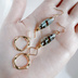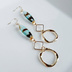 それぞれ飾りフープとスクエアフープ、大人な縦じま色のロングナツメカットのチェコビーズなどを合わせた揺れるタイプのお洒落なピアスとなっております☆ メインのお色は大人な雰囲気漂うブラウンとブルーの2色、ゴールド金具と合わせて爽やかな雰囲気の色合いにまとめました。 結構長めのサイズの作品となっておりますので、揺れるタイプの作品がお好きな方に特におすすめの作品となっております☆* ☆チェコビーズ オーシャンミックス ナツメロング 約19x7mm ☆メタルビーズ ゴールド ☆スペンサー ゴールド ☆飾りフープ ゴールド ☆スクエアフープ ゴールド ☆9ピン ☆丸カン ☆ピアス用金具(フック式☆ゴールド) 長さは約6.5cmとなっております。(1cm程のピアス金具を含む)